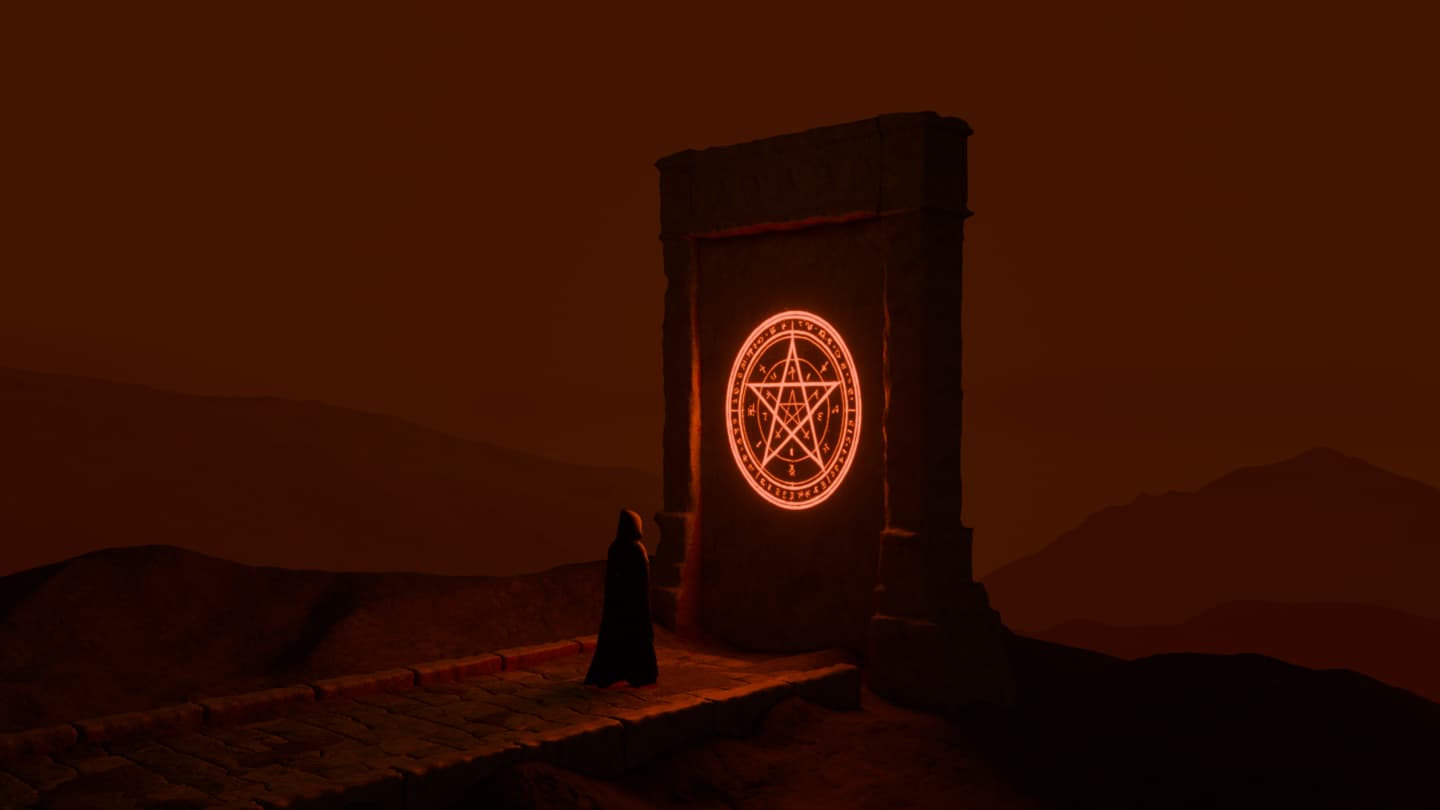 Summoning gate, or something. Just don’t look too close at the cultist. It’s totally not just a couple rounded cubes with minimal sculpting and no texture. Nope